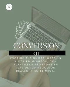 Añade Conversion Kit y escribe tus bumps, upsells y CTA’s con plantillas probadas en más de 100 negocios (y en el mío). Incluye: 10 plantillas para tus bumps, página de ventas del upsell y 100 frases listas para activar la acción desde la emoción (sin sonar a venta).